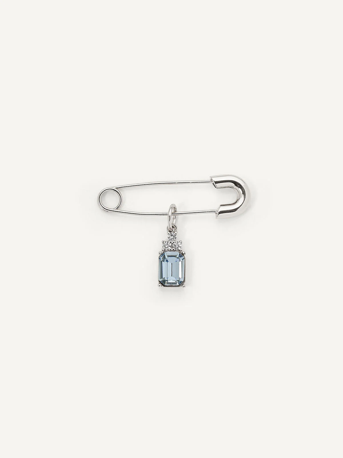 Emerald cut gems have an air of elegance and sophistication. Known to symbolize clarity and self-assurance, this little blue gem is sure to give you a boost of confidence as you walk down the aisle on your big day. Its ocean hue and discrete pin make it the perfect “something blue.”
